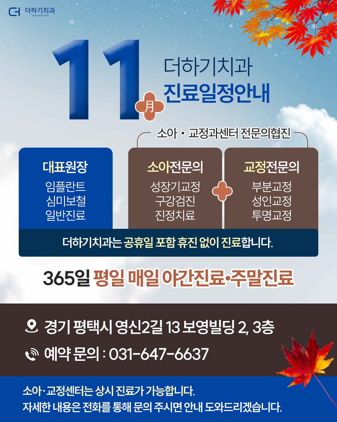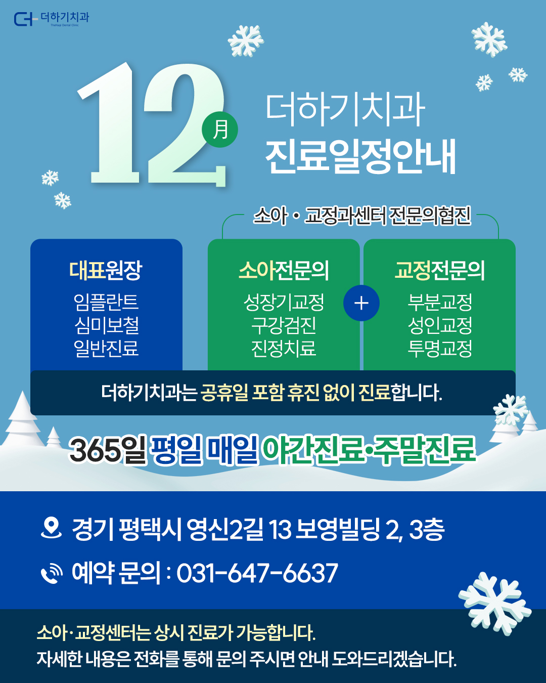 A. 네, 더하기치과는 연중무휴로 운영됩니다.
